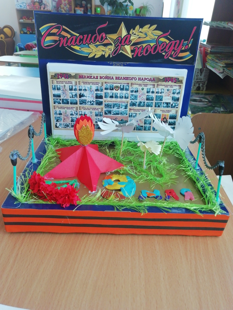 С целью воспитания у детей патриотических чувств, интереса к ее героическому прошлому, уважения к павшим защитникам Родины, воспитатель Магизова Светлана Александровна и дети группы №3 "Тюльпанчик" вместе с родителями нарисовали рисунки, сделали поделки к празднику «День Победы!».