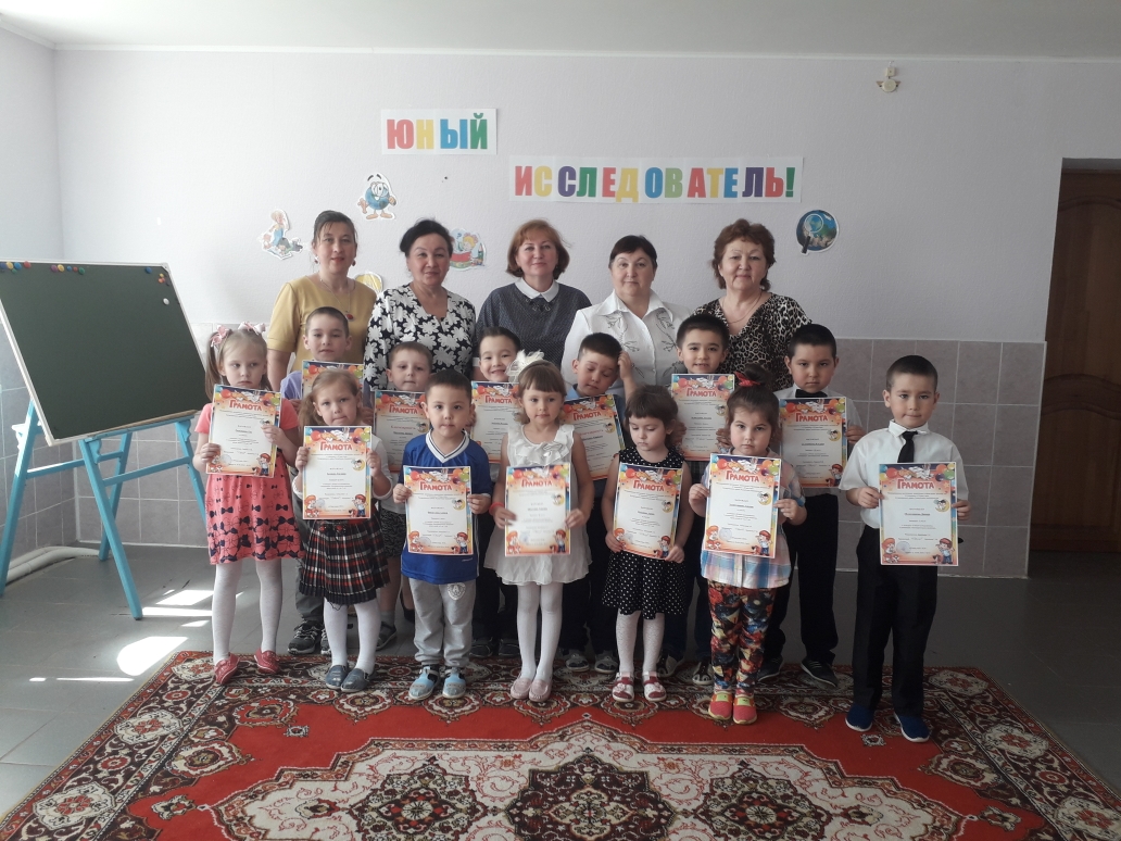По желанию детей и просьбе родителей 27 апреля состоялся детсадовский конкурс исследовательских работ среди воспитанников от 3 до 7 летнего возраста «Юный исследователь - 2018». Конкурс проводился в целях выявления и поддержки детей, обладающих высоким уровнем интеллектуально-творческих способностей, предпосылками к одаренности, исследовательского поведения. В конкурсе приняли участие 10 воспитанников. Работы оценивали компетентное жюри в составе заведующей Латыповой Г.М., воспитателя Зиянбаевой А.А. и ветерана педагогического труда Шариповой А.А. Все участники были награждены грамотами МАДОУ детский сад « Солнышко». А три наших воспитанника Щеголев Кирилл, Шакиров Радмир и Магизов Данис показали мастер-классы своих исследовательских работ, с которыми они достойно выступили в районном конкурсе и завоевали призовые места. Администрация ДОУ наградила их благодарственными грамотами.