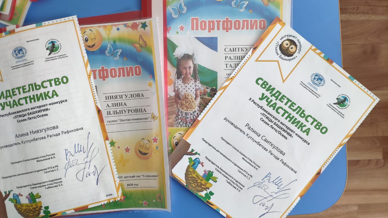 Воспитанники группы "Цветик-семицветик" приняли участие в Республиканском конкурсе "Птицы Башкирии", первые грамоты уже пришли. Поздравляем наших участников! Грамоты пополнят портфолио детей.