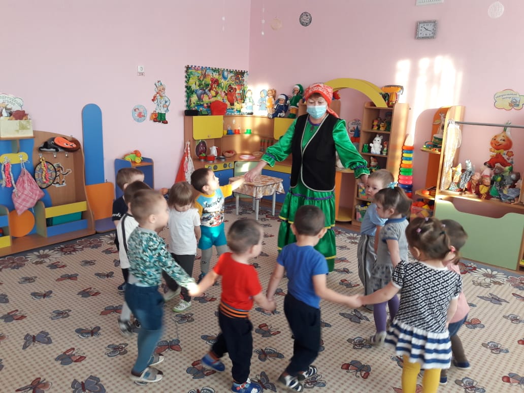 С утра детей встречала башкирская мелодия и под нее же дети выполняли зарядку. Проводя утренний круг, воспитатели планировали с детьми мероприятия на день, который включал в себя беседы о родном башкирском языке. В ходе беседы детям представили аудиозапись в авторском исполнении А.Ш. Ягафаровой стихотворение «Снегирь и синичка».Главной целью воспитателей являлось ознакомление детей с башкирским языком, национальными костюмами народа и их обычаями, пробуждение интереса к языку, истории и культуре родной Республики, ее символике, воспитание чувства гордости за свою Родину, ее достижениям, любви к многонациональному народу, населяющему родной Башкортостан. Воспитанники активно участвовали в башкирских народных играх. Занятия прошли успешно и плодотворно