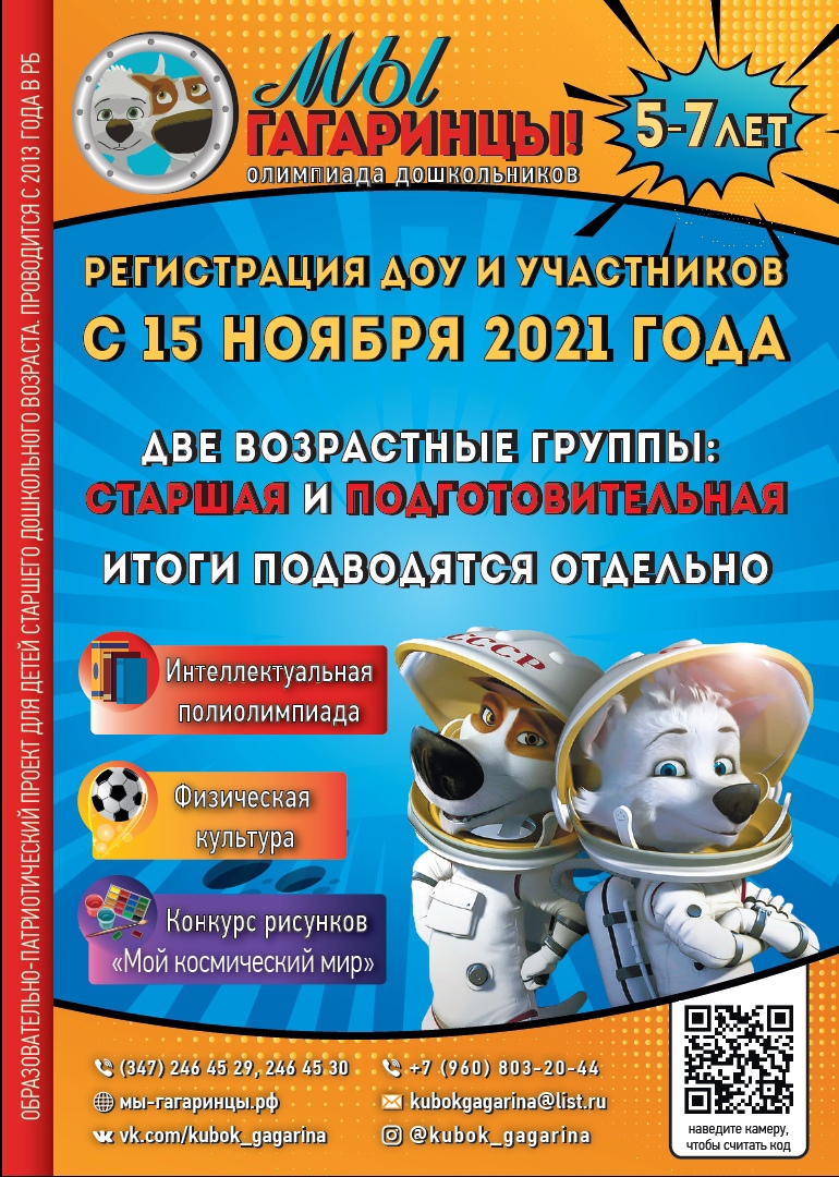 1.1. Настоящее Положение о Республиканской олимпиаде для детей старшего дошкольного возраста «Мы гагаринцы» (далее – Олимпиада) определяет порядок организации и проведения Олимпиады на территории Республики Башкортостан, её организационное и методическое обеспечение, порядок участия в Олимпиаде и определения победителей и призёров в 2021-2022 учебном году.