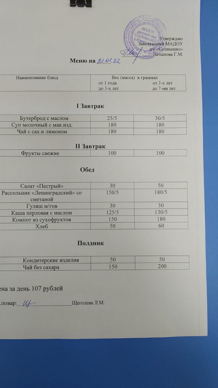 Организация питания в МАДОУ детский сад «Солнышко» с. Юмагузино