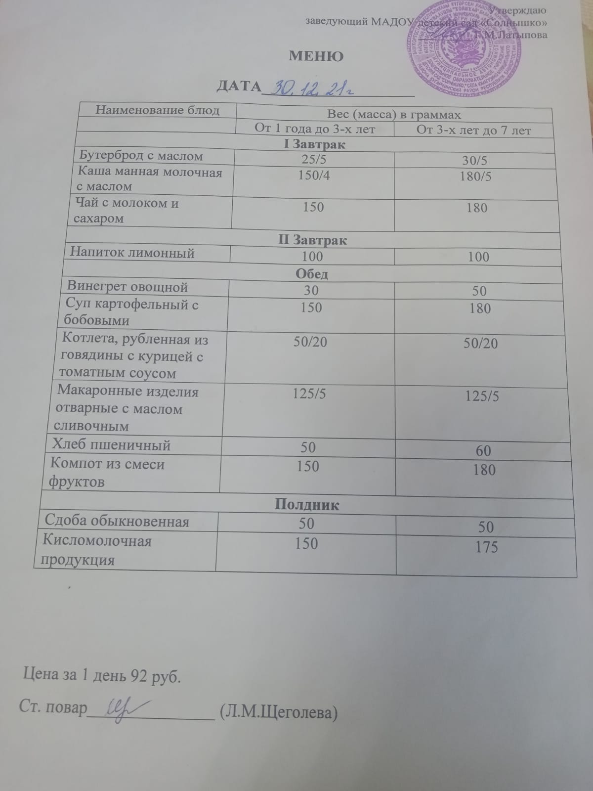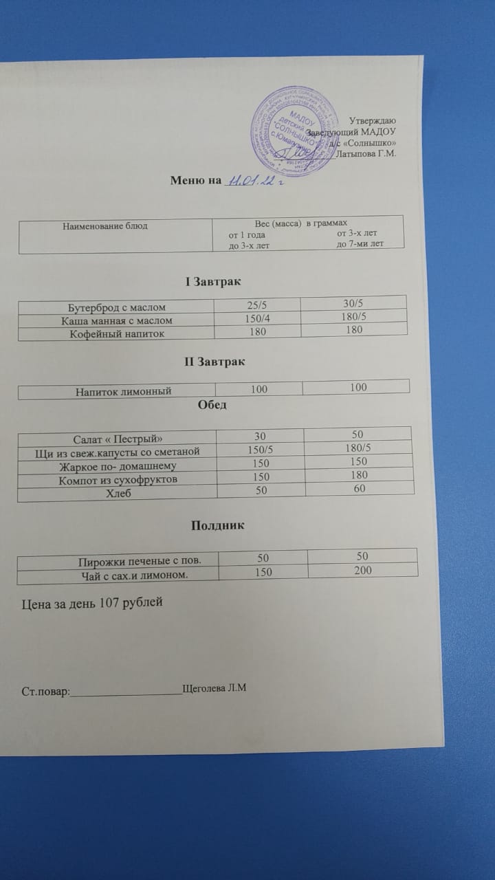 Организация питания в МАДОУ детский сад «Солнышко» с. Юмагузино