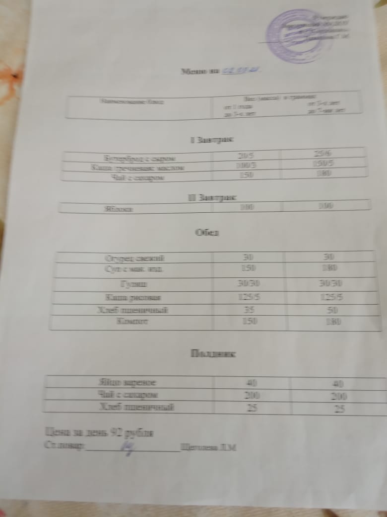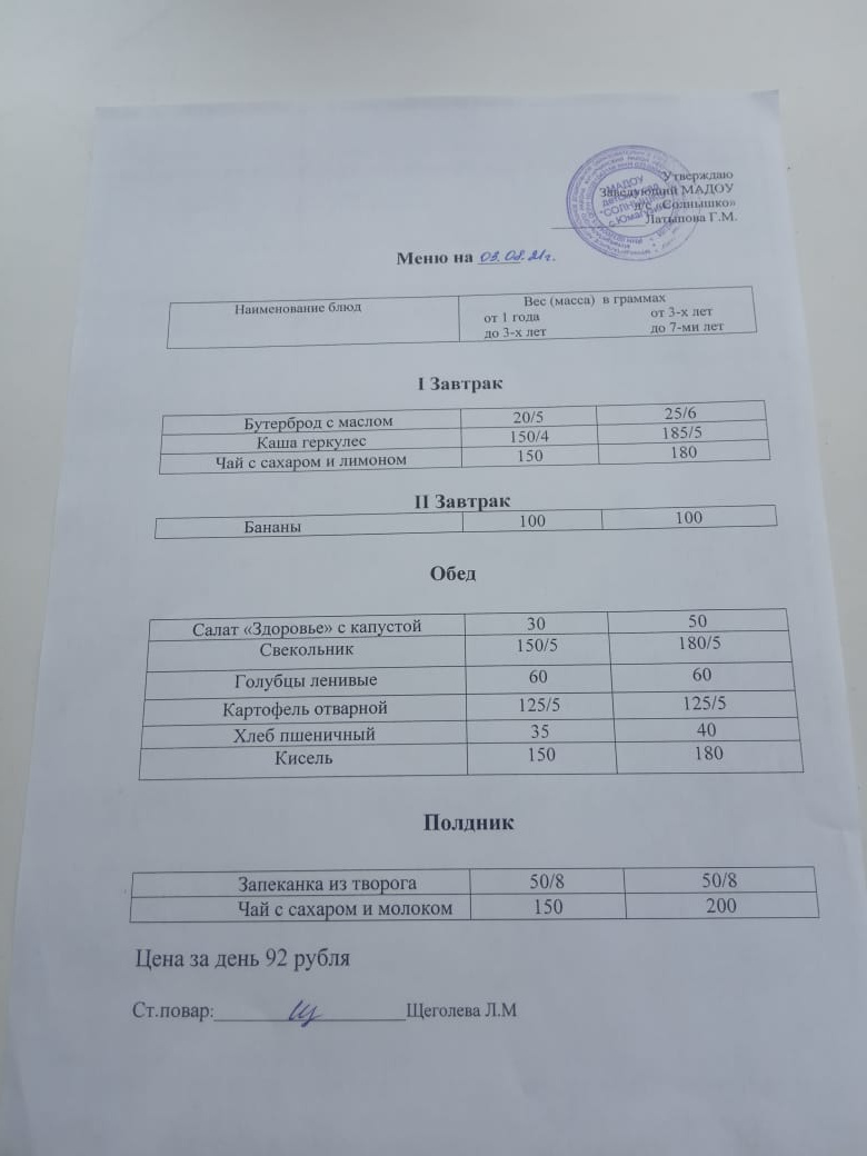 Организация питания в МАДОУ детский сад «Солнышко» с. Юмагузино