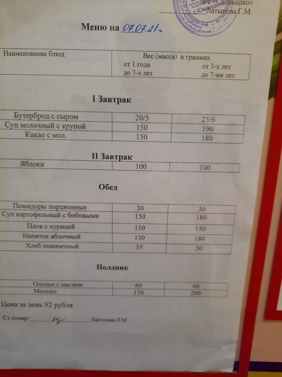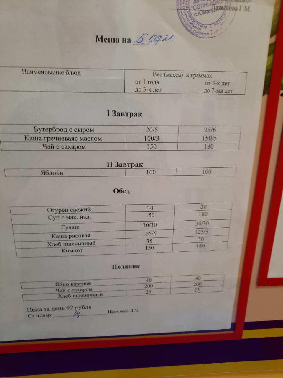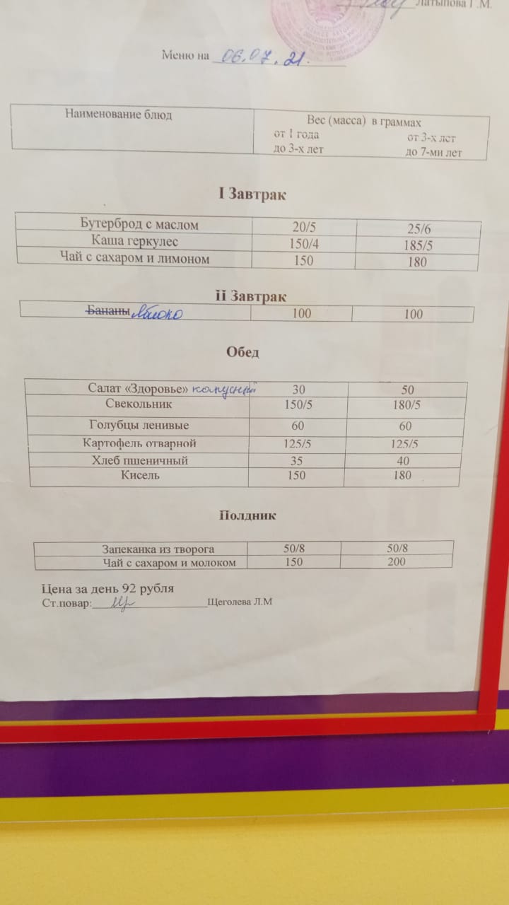 Организация питания в МАДОУ детский сад «Солнышко» с. Юмагузино