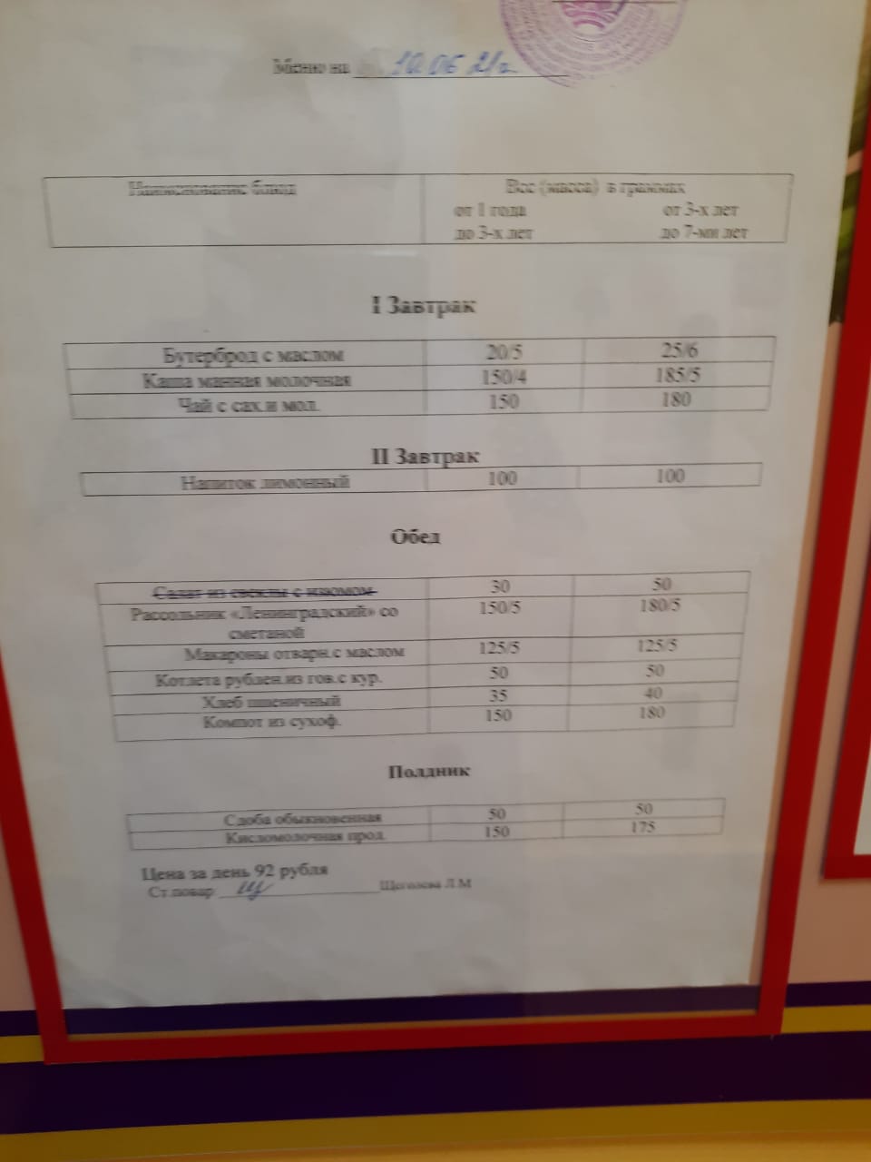 Информация о наличии диетического меню в образовательной организации