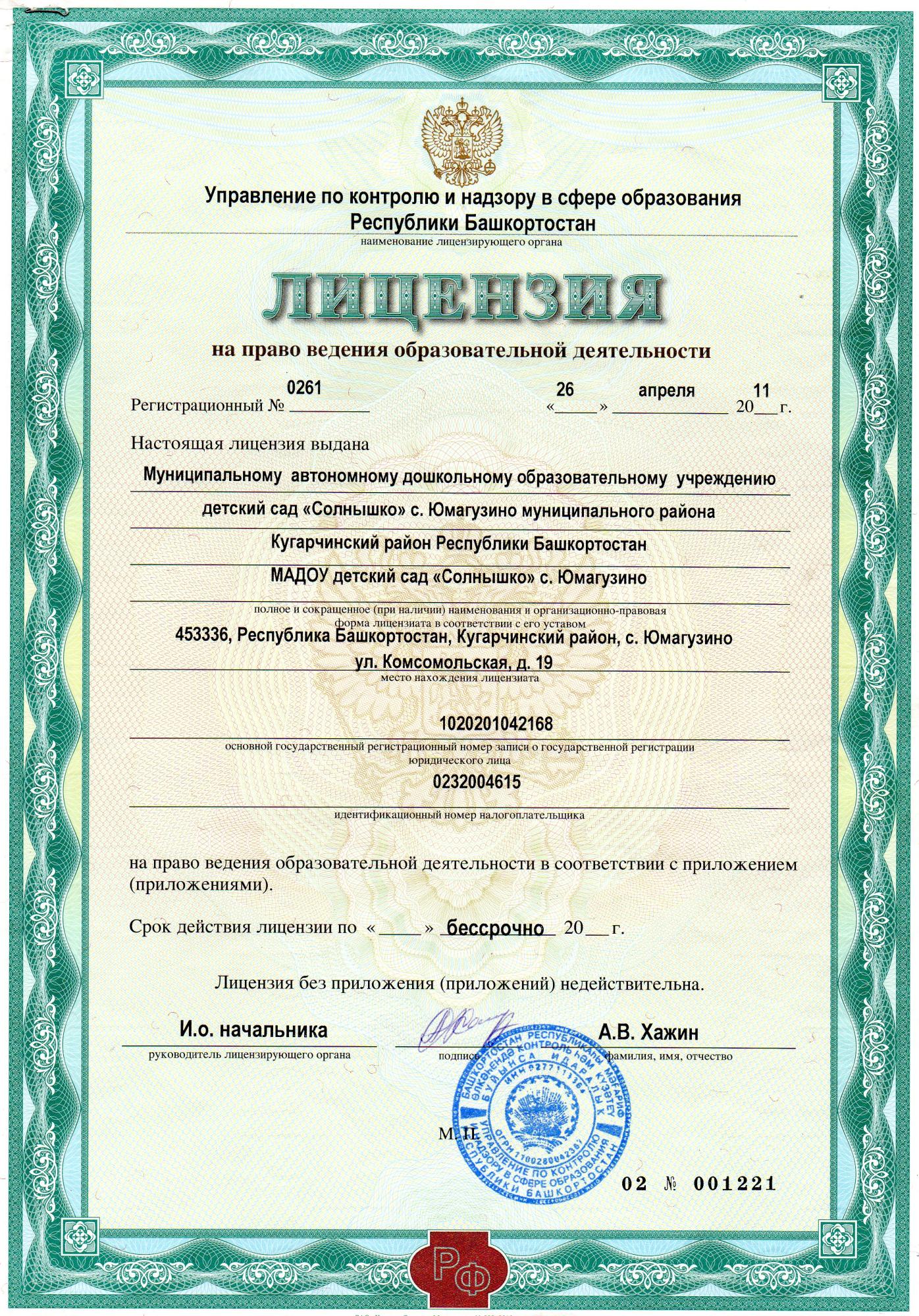 | Адрес места нахождения образовательной организации | 453336, Республика Башкортостан, Кугарчинский район, с.Юмагузино, ул.Комсомольская 19 |