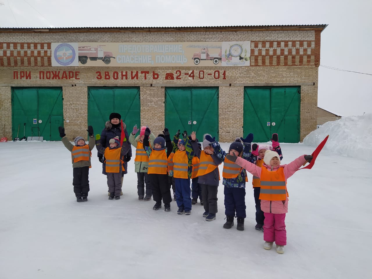 Во исполнение письма МКУ ОО Администрации МР Кугарчинский район от 19.02.2021г №148, в целях воспитания и привития культуры безопасного поведения работникам, воспитанникам и родителям, приказа МАДОУ детский сад «Солнышко» № 57- ОД от19.02.21 года воспитанники старшей группы побывали на экскурсии в пожарной части с. Юмагузино.