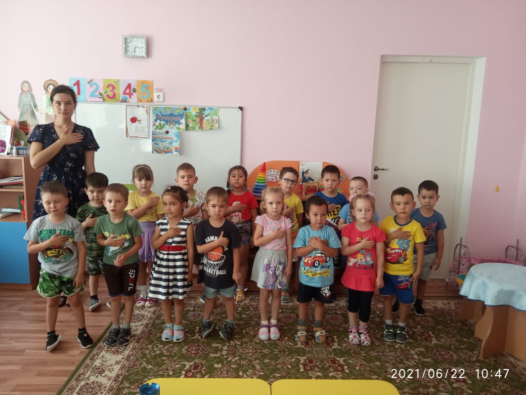 «22 июня — День памяти и скорби — день начала Великой Отечественной войны». Эту скорбную дату мы отмечаем как День памяти, День гордости и скорби о тех, через чьи жизни прошла жестокая война, о тех, кто не пожалев жизни, не вернулся с кровавых полей сражений. 80 лет отделяет нас от того скорбного дня, когда в жизнь каждого человека нашей страны вошло это страшное слово – «война»! В группах прошло памятное мероприятие, посвященное Дню памяти и скорби, дети среднего и старшего дошкольного возраста почтили память погибших минутой молчания и узнали немного больше о тех далеких и страшных днях войны. Началось с тематической беседы «22 июня — день памяти и скорби», целью которой было расширить знания детей о Великой Отечественной Войне, вызвать чувство гордости за свою Родину и свой народ. "Несколько десятков лет назад был такой же прекрасный, как и сегодня, июньский денёк. Светило солнце. Играли дети. Но началась война. Этот день напоминает нам обо всех погибших в этой войне. Воспитатели (Хаирова Г.М., Усманова З.Т.) рассказали детям, как мы скорбим о тех, кто принял на себя первый удар наступлений фашистской Германии, о тех, кто сражался на фронтах и партизанил в отрядах, о тех, кто героически работал в тылу и тех, кто был угнан в Германию и замучен в концлагерях, — всех, кто видел и осознал ужасы фашизма. Этот день напоминает нам о всех погибших в боях, замученных в фашисткой неволе, умерших в тылу от голода и лишений. Мы скорбим по всем, кто ценой своей жизни выполнил святой долг, защищая в те суровые годы наше Отечество. 22 июня 1941 года – одна из самых печальных дат в истории России. Эта дата отмечена в календаре, чтобы из поколения в поколение передавались имена героев Великой Отечественной войны. Только благодаря их усилиям мы имеем сегодня спокойную жизнь без рева военных самолетов, оглушающих взрывов гранат и мин! Мы за мир!